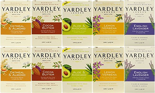 Trusted for generations, Yardley soaps are crafted with essential oils and skin caring ingredients that help smooth your skin and soothe your mind. Experience our lovely scents and rich lather for a truly delightful shower with formulas that will leave your skin super soft, ultra-moisturized, and beautifully replenished.Pack of ten 4.25 ounce Bars, 2 bars of each scent