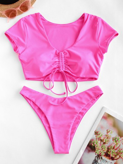 ZAFUL Cinched High Leg Two Piece Swimsuit
