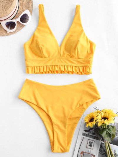 ZAFUL Elasticated Straps Ruffle Tankini Swimwear