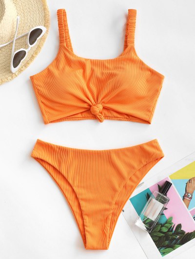 ZAFUL Knot Elasticated Straps Ribbed Tankini Swimwear