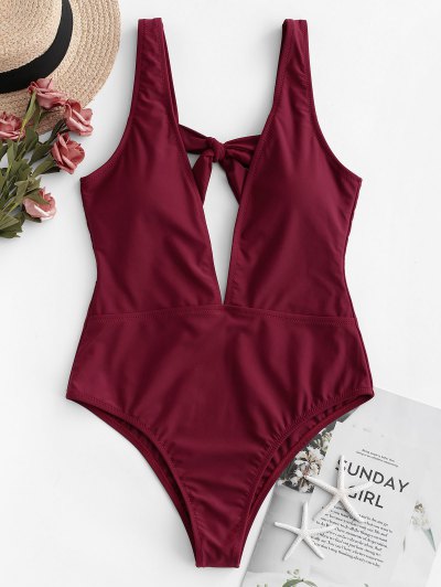 ZAFUL Plunge Knot Low Back One-piece Swimsuit