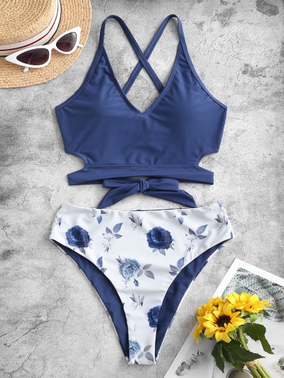 ZAFUL Reversible Criss Cross Floral Tankini Swimwear