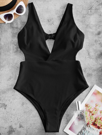 ZAFUL Ribbed Surplice-front Monokini Swimsuit
