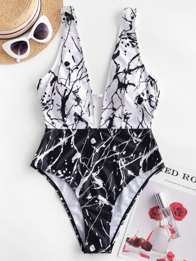 ZAFUL Splash Ink Colorblock Plunging One-piece Swimsuit